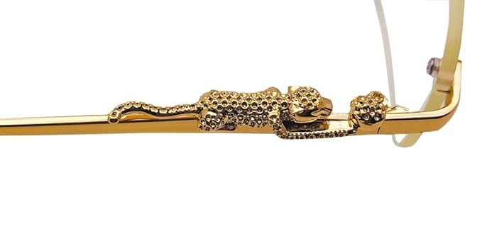 RSINC Imported Men Rimless Eyeglass Metal Panther Eye-ware For Men & Women (535 54-18-140 CART RIMLESS Gold Panther) A2